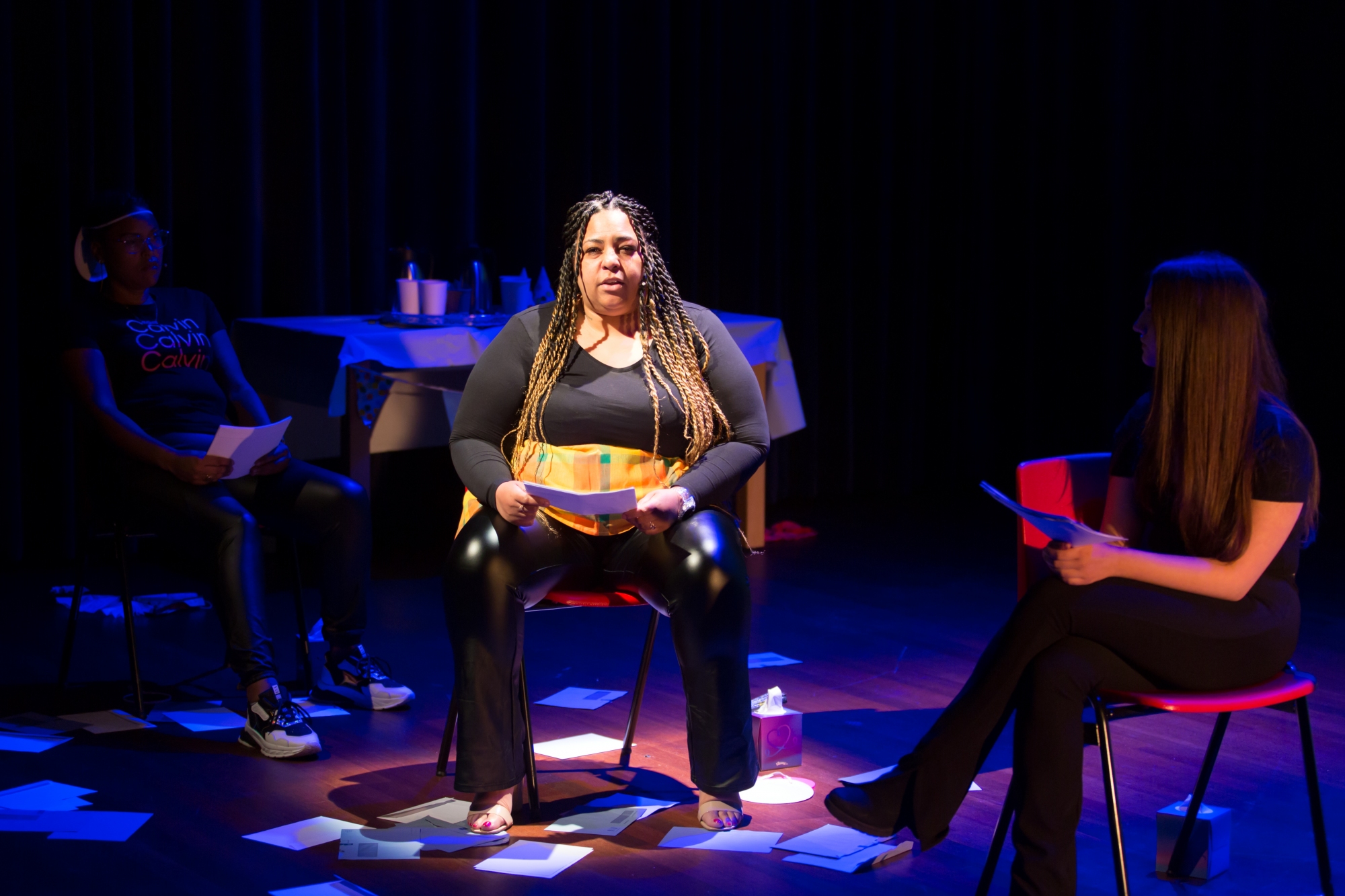 Van de vijftien deelnemers aan het traject, zie je vijf dames op het podium en twee op het scherm. De verhalen die zij vertellen, zijn de eigen ervaringen van de deelnemers. Voor de meeste van hen was het de eerste keer dat zij hun verhaal vertelden. Nu doen zij dat op het podium voor publiek persoonlijke verhalen in een theatrale setting. In de zaal zorgde dit niet alleen voor herkenning, ook voor nieuwe inzichten bij de aanwezige ministers, rechters en belastingdienstmedewerkers. Voor veel bewoners uit onze wijk sluit dit aan op de werkelijkheid, zij zijn slachtoffer van de toeslagenaffaire door de overheid.